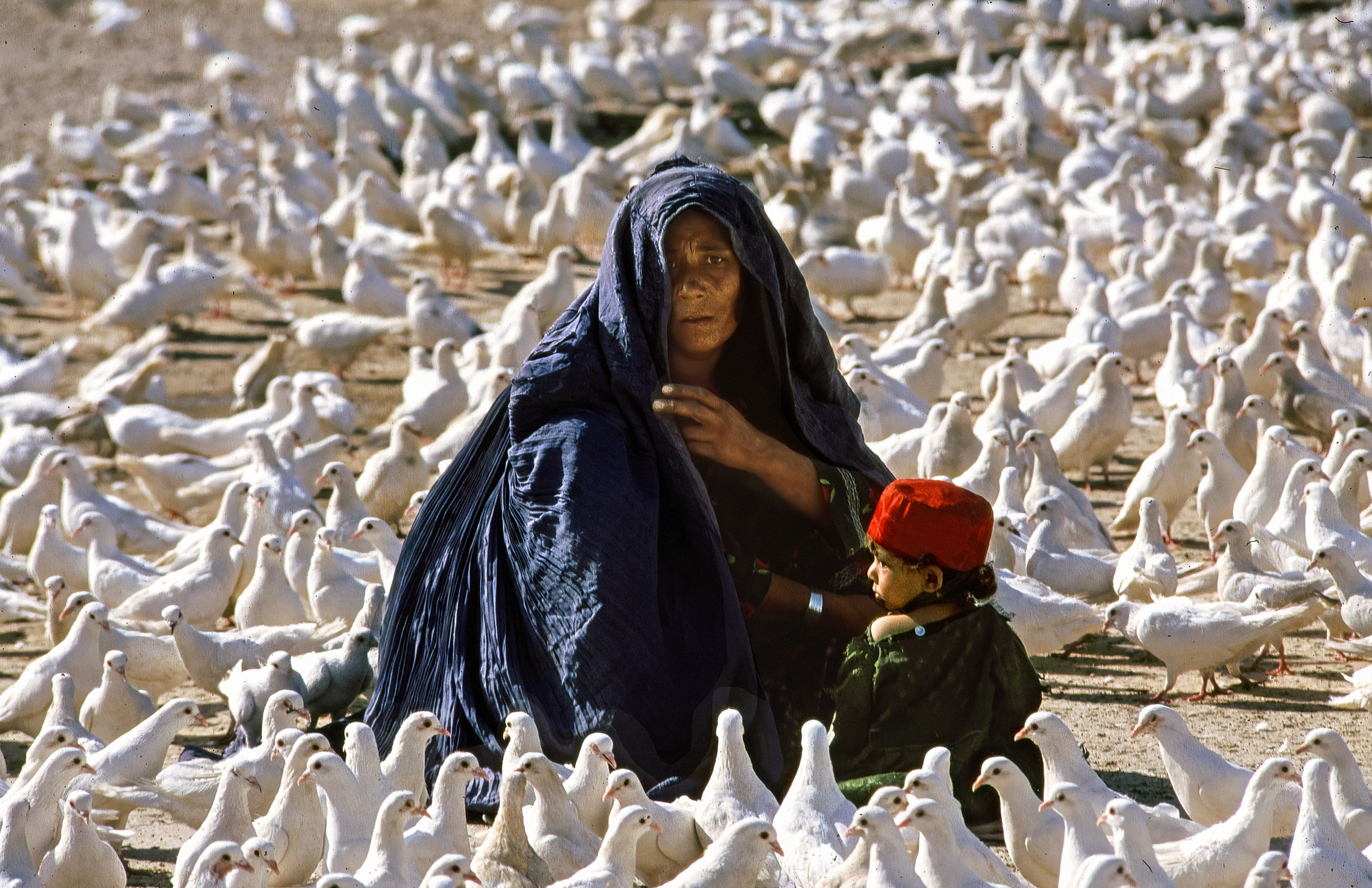 This was followed by a visit lasting just a few hours to Mazar-i-Sharif, in the far north of Afghanistan, where – apart from a visit to the famous ‘Blue Mosque’ on the Islamic holiday of Friday – there was no other programme. And yet this visit ultimately proved to be a highlight of the trip to Afghanistan, for after touring the mosque, I spotted that woman sitting in the large square in front of it, playing with a little boy amidst a sea of white doves. I quickly raised my camera and fired the motor drive three times. Unfortunately, the Nikon motor was so loud in the otherwise quiet surroundings that the woman looked up in alarm at the second ‘shot’ and gazed into my camera. Quite a few friends and fellow photographers have repeatedly claimed that these were the best photos I had ever taken. So here is the first image from this mini-series (on Fujichrome 100 slide film)