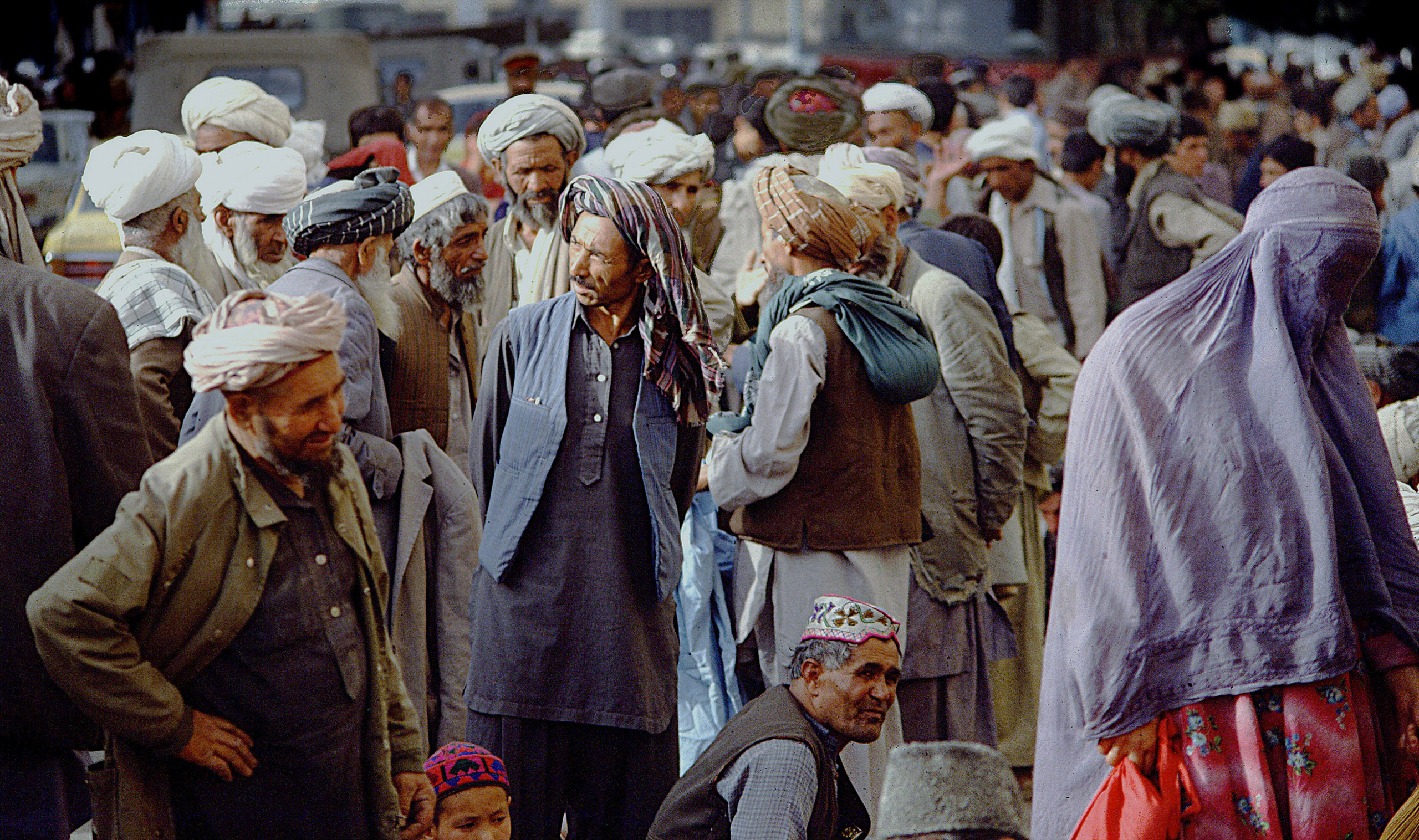 This was followed by a visit lasting just a few hours to Mazar-i-Sharif, in the far north of Afghanistan, where – apart from a visit to the famous ‘Blue Mosque’ on the Islamic holiday of Friday – there was no other programme. And yet this visit ultimately proved to be a highlight of the trip to Afghanistan, for after touring the mosque, I spotted that woman sitting in the large square in front of it, playing with a little boy amidst a sea of white doves. I quickly raised my camera and fired the motor drive three times. Unfortunately, the Nikon motor was so loud in the otherwise quiet surroundings that the woman looked up in alarm at the second ‘shot’ and gazed into my camera. Quite a few friends and fellow photographers have repeatedly claimed that these were the best photos I had ever taken. So here is the first image from this mini-series (on Fujichrome 100 slide film)